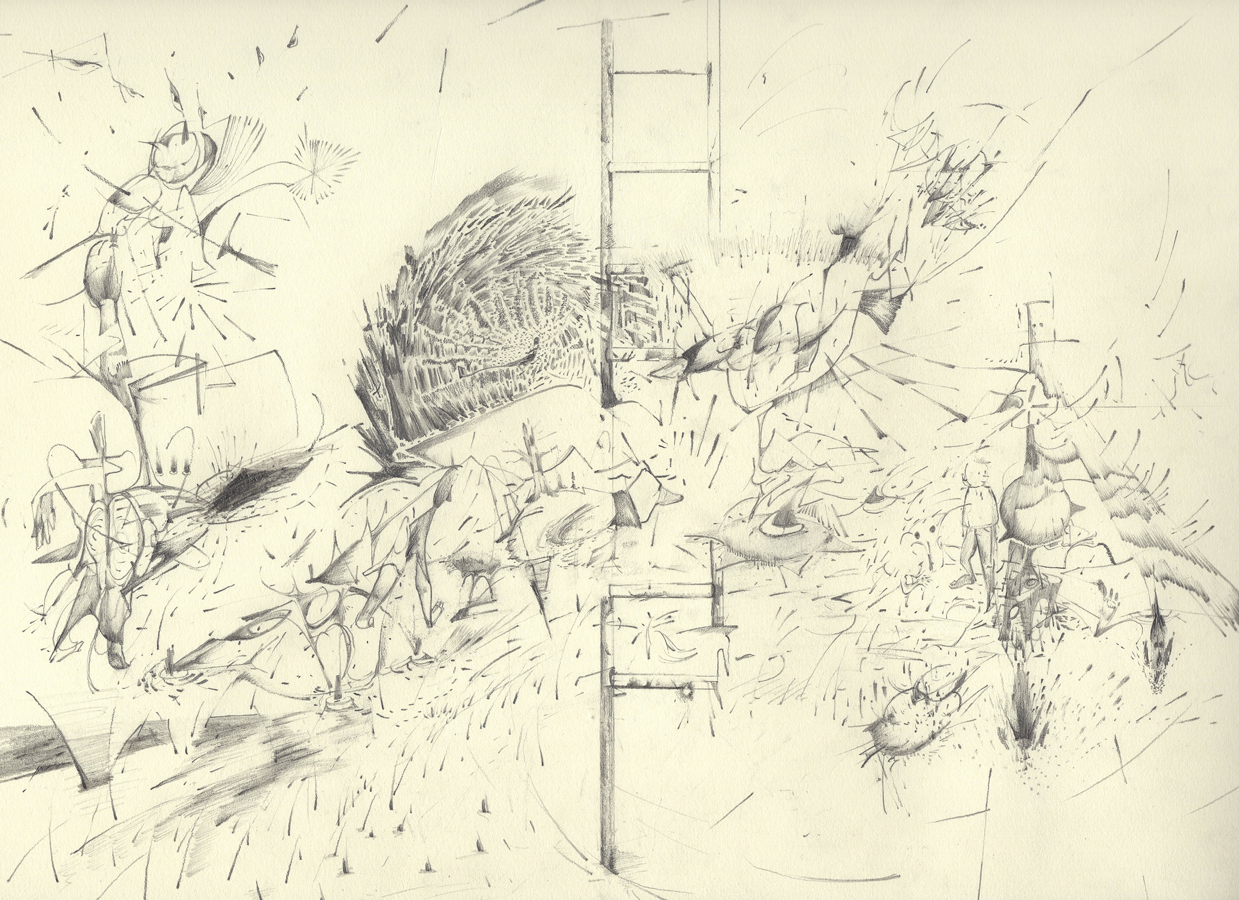 Factional strike, graphite on paper, 9” x 12”, 2019.