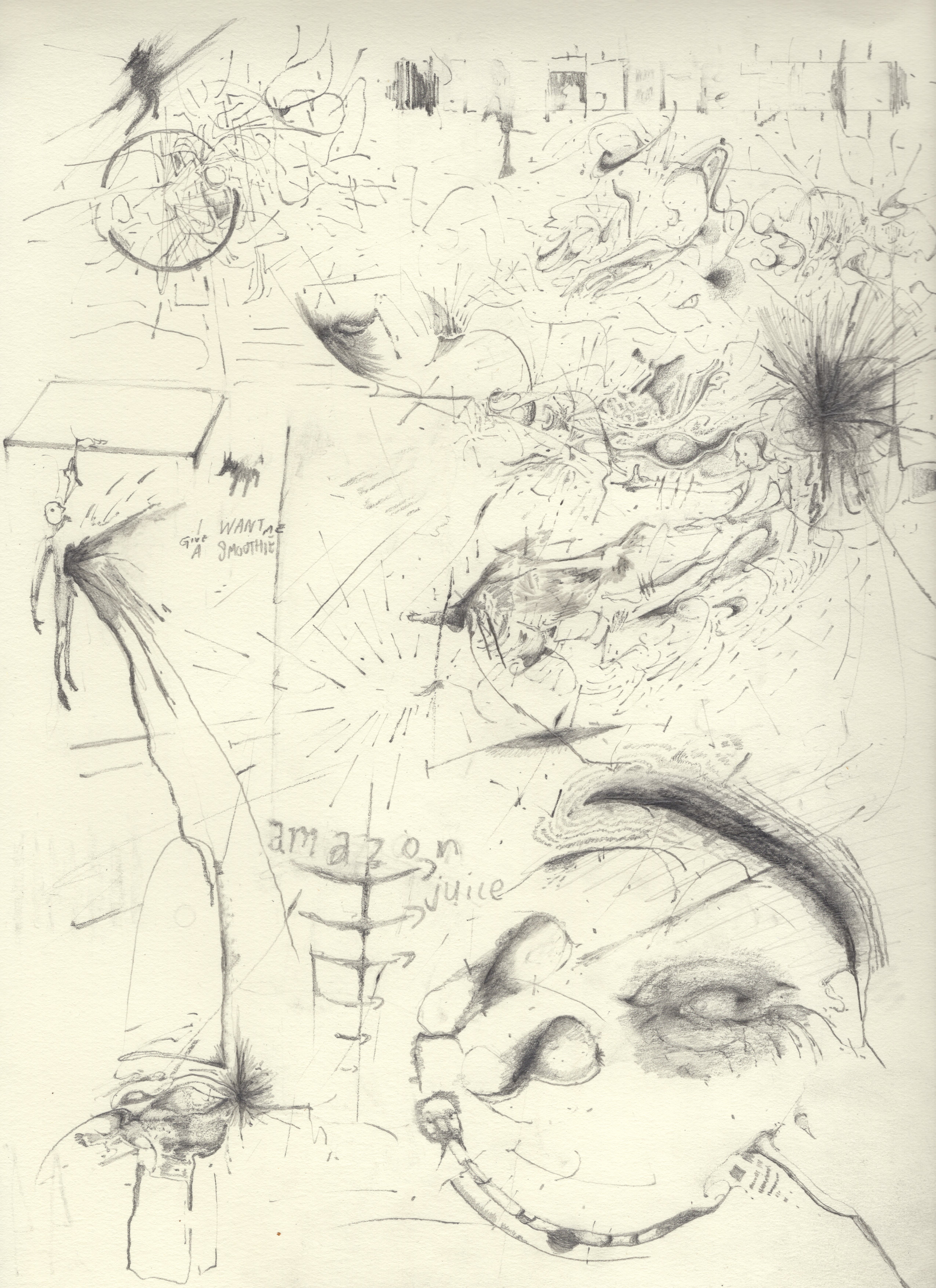 Puncture (people prefer to be with their own), graphite on paper, 9” x 12”, 2023.